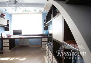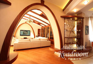 Мебель изготовлена из американского ореха, использовано витражное остекление. Функциональные дизайнерские решения в различных помещениях.