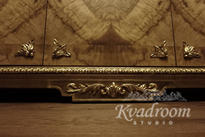 В отделке интерьера и производстве мебели используется техника золочения и патинирования. Декоративные и скульптурные элементы.