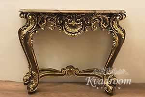 Консоль изготовлена из массива дуба, 100% ручная резьба, морилка, сусальное золото, лак Sayerlack.